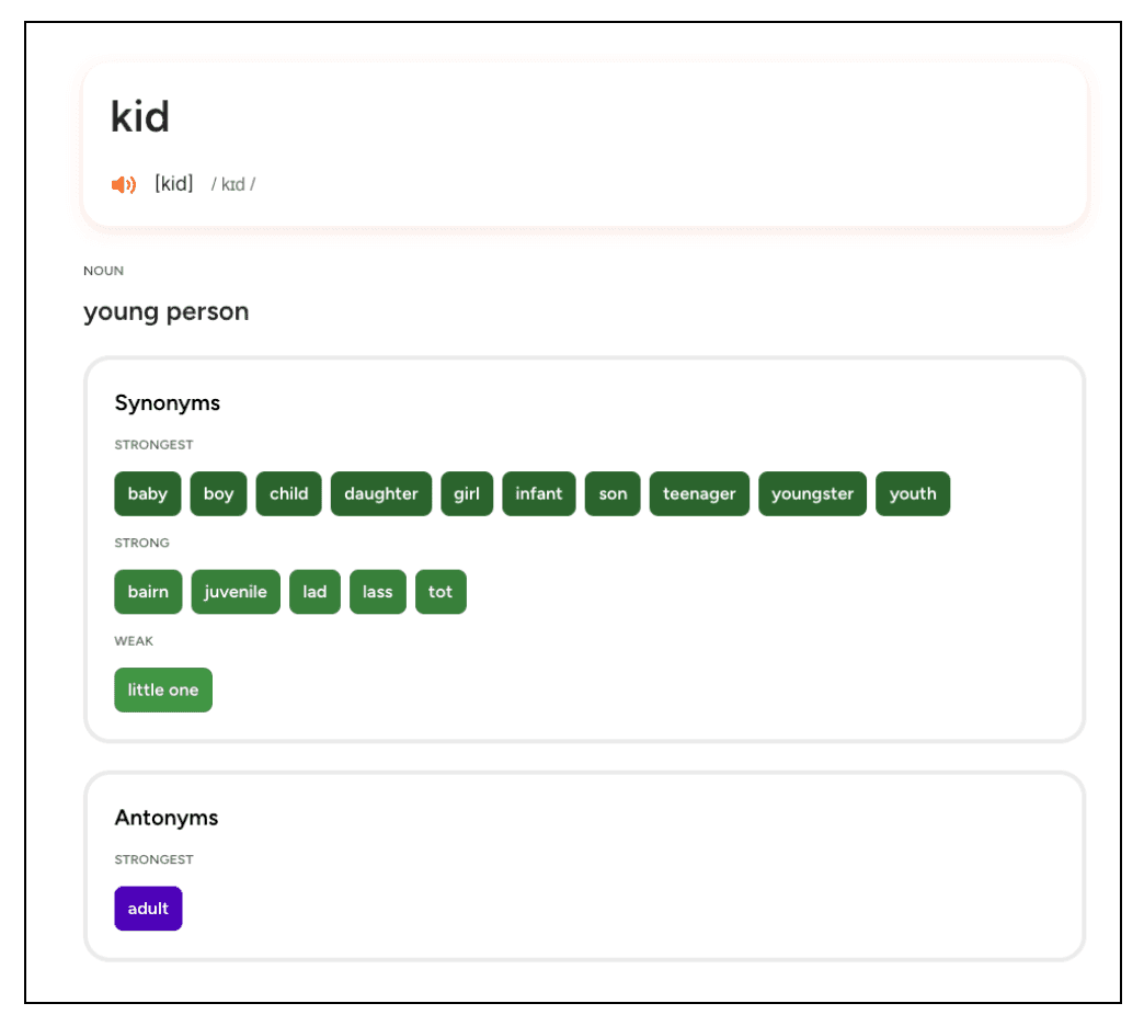 Есть даже описания оттенков значений, чтобы вам было проще выбрать подходящий синоним.